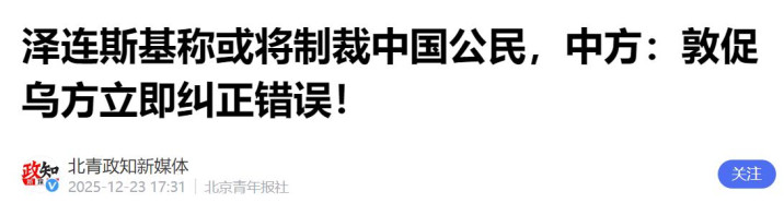 泽连斯基如果以为制裁几个中国企业就能换来西方更多的赏识,那他可真是赌错了方向。