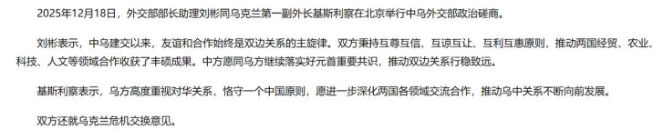可巧的是,就在这之前的五天,乌克兰第一副外长基斯利察刚刚在北京和中国进行了一轮政治磋商,场面体面、用词温和,中方甚至再次强调友谊与合作是主旋律。